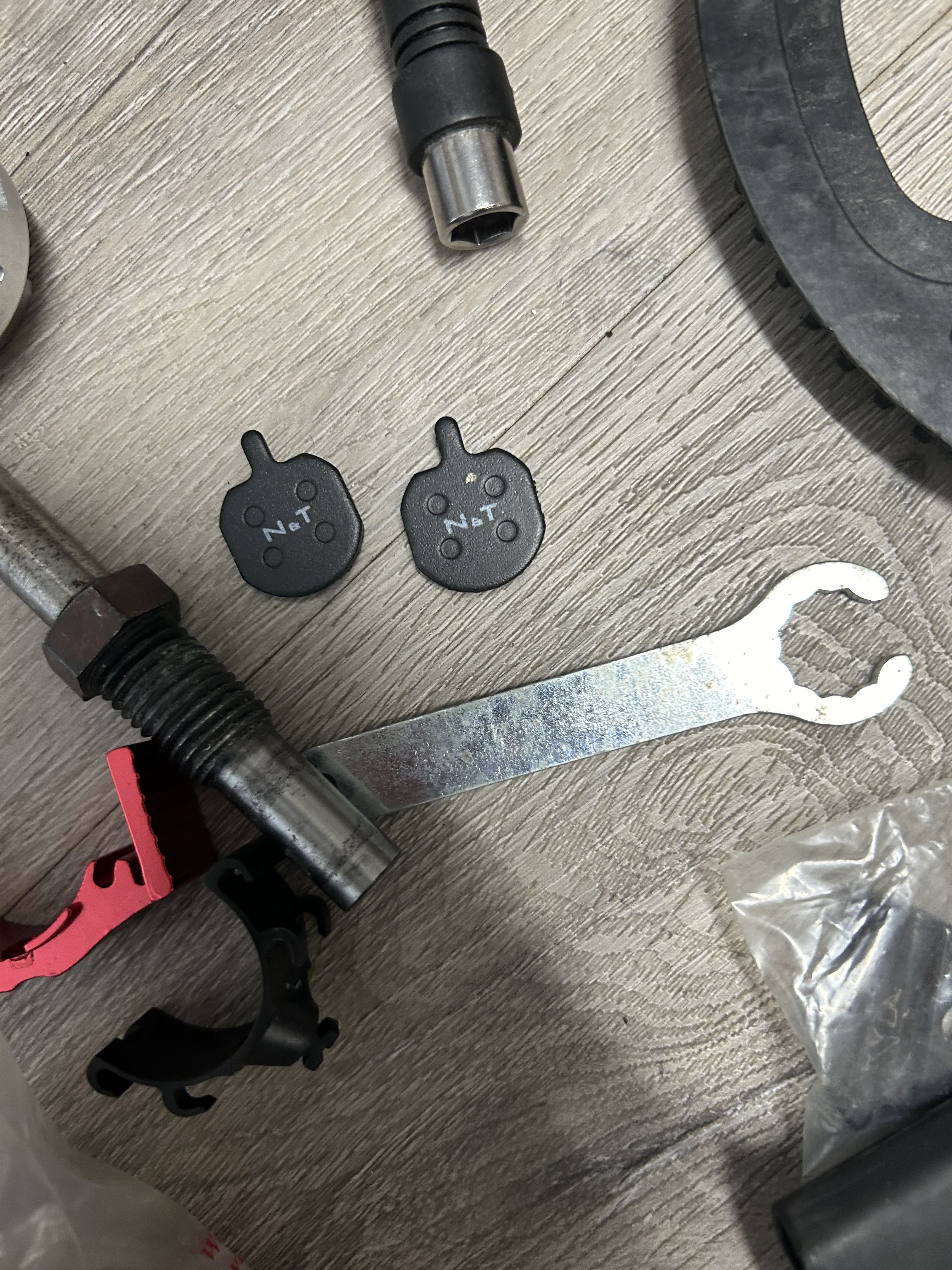 The brass pins that hold the handle bars didn’t have the wide press bottoms and the QR clamp that tightens the bars on the stem constantly slides open The rotors have a scoloped end