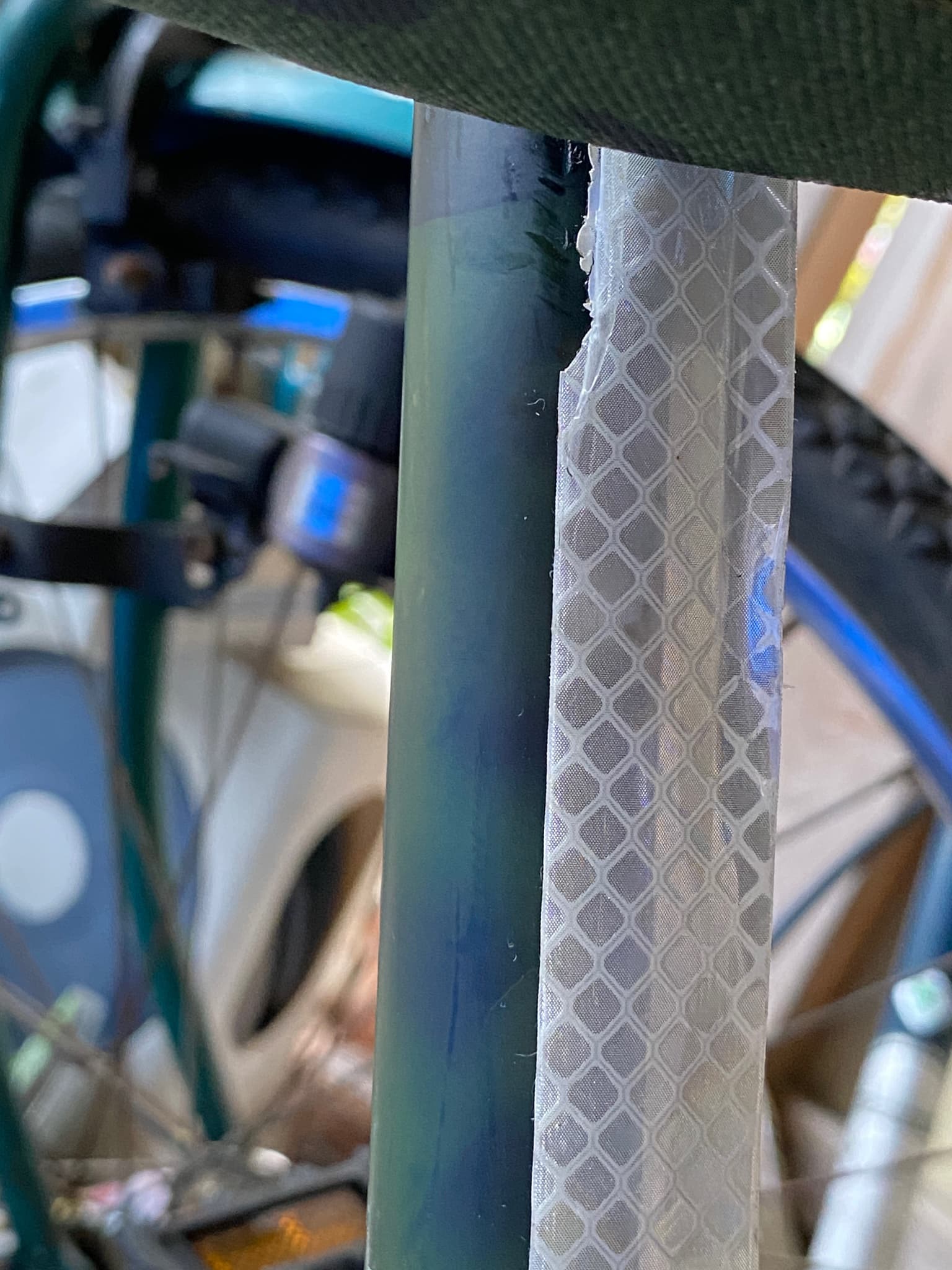 The prism reflective tape on the front tube was peeling off from the edges and chipping in parts, so it was no longer useful and I decided to replace it.